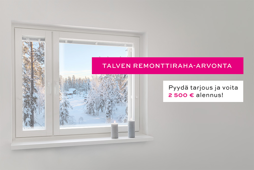 Nyt on loistava hetki selvittää ikkunaremontin hinta ja pyytää tarjous ikkunaremontista. Kun pyydät tarjouksen ikkunaremontista joulu-tammikuun aikana, olet mukana 2500 € remonttiraha-arvonnassa!