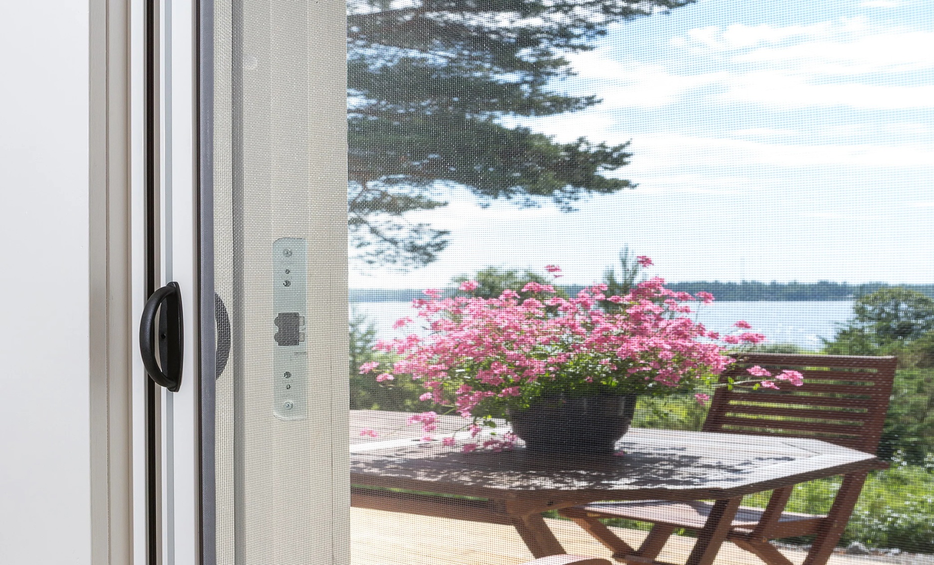 Tiivi Oviverkko valmistetaan aina mittatilaustyönä sinun oveesi. Se rullautuu sivulle ja asennetaan terassi- tai parvekeoven sisäpuolelle karmin pintaan. Näin asennettuna Tiivi Oviverkko pienentää mahdollisimman vähän oven kulkuaukkoa.